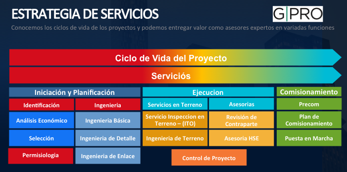 Nuestra experticia esta en la asesoría en el desarrollo de proyectos desde las etapas de identificación y estudios, la inspección técnica en terreno y el proceso de comisionamiento y puesta en marcha.
